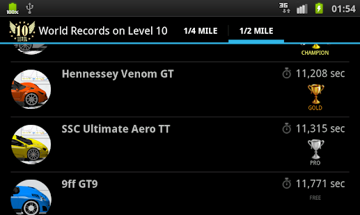 Android Drag Racing Level 7 tune setup for half 1/2 mile races with Ferrari Novitec Rosso 599 GTB Upgrades 5 5 5 5 5 5 Win nearly every half mile race against others and earn easy RP. The tune is very close to the current world record - time 12,892 - V 1.6. ... View Video